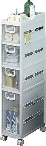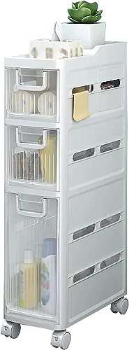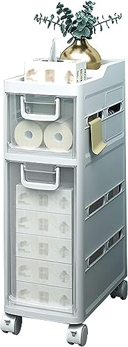• ☀ Easy to move and clean: The Slim Toilet Paper Storage Cabinet with rollers, which are easy to pull out and push back for smooth movement across the floor surface. The sleek closed drawer storage makes it easy to clean with a simple wipe with a damp cloth.