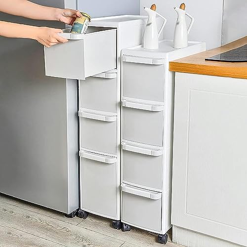 Home Bathroom Furniture OPSREY Small Bathroom Storage Corner Floor Cabinet, Narrow Bath Sink Organizer with Drawers and Casters, Toilet Paper Organizer Cabinet