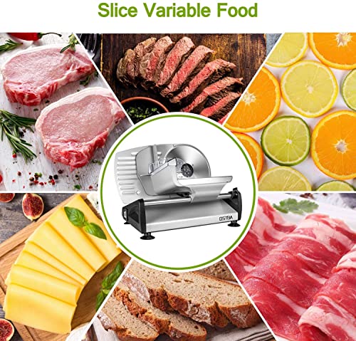 - Universal stainless steel blade: OSTBA meat slicer machine has the 19cm stainless steel serrated blade, driven by 150 watts of fast, high yield slicing power, It will help you keep a consistent sharp cut. The blade is easy to install and remove, convenient to clean by dishwasher.