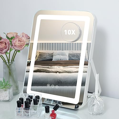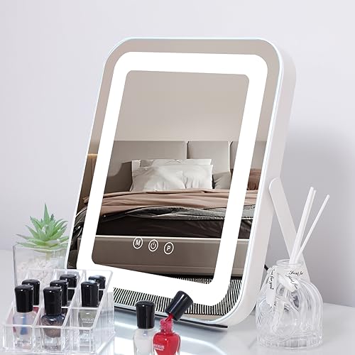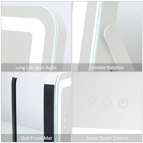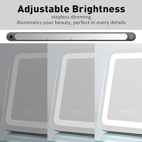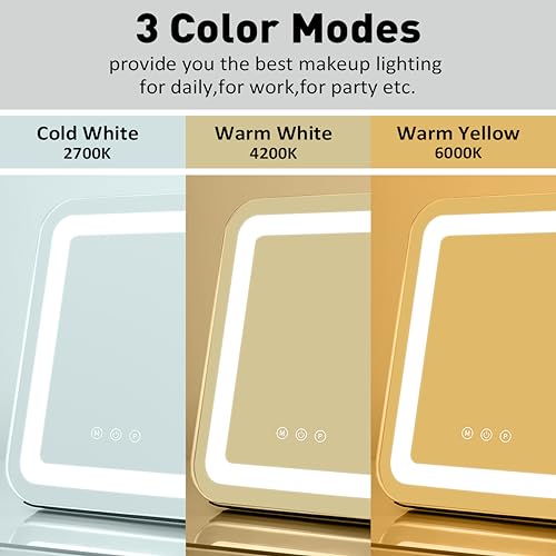 - SMART TOUCH CONTROL & MEMORY FUNCTION—Just tap the switch button to turn the light on and off, turn on the different lighting by touching the sensor, press the sensor to freely adjust the brightness. The vanity mirror remembers the brightness when it was last turned off due to the memory function, really convenient to use.