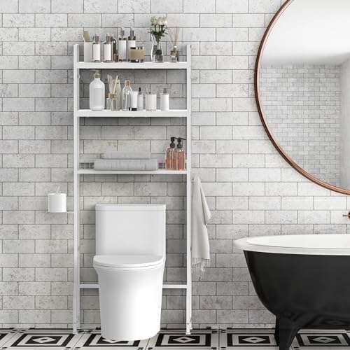 - 【3-Tier Storage Space】 This over the toilet storage rack includes a three-layer storage rack, which can increase the vertical storage space above the bathroom without occupying additional floor space. It can be used to place essential items in the storage room, such as towels, toilet paper, shampoo, shower gel, etc.
