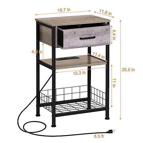 - ✅【 Decorate Your Home】The combination of the gray wood top, fabric drawer, and bottom metal storage shelf gives the modern charm of this night stand with drawers. The simple and modern design not only adds a unique personality but also creates a rustic and retro style for your room. Suitable to put in your bedroom, living room, entryway, etc.