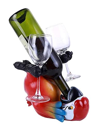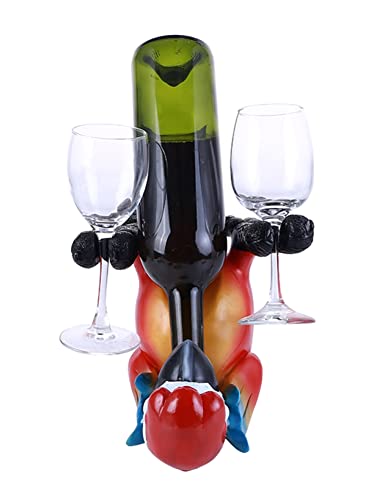 Home Dining Room Furniture Parrot Wine Bottle and Two Wine Glasses Holder
