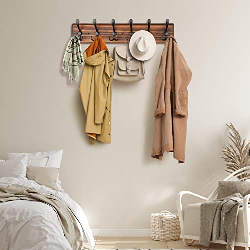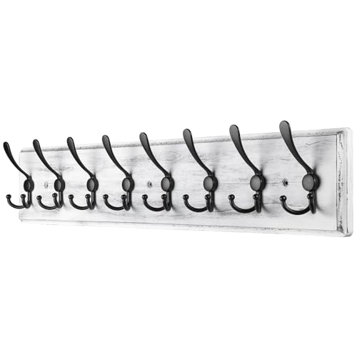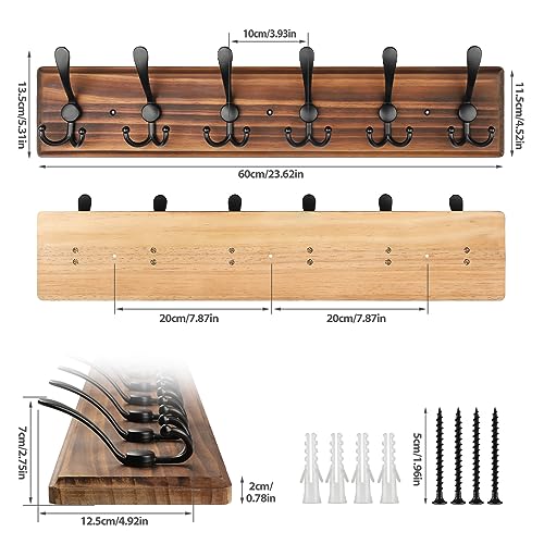 - [Durable, high quality] The wood of wall mounted coat hook is made of pine wood. The clothes hook is fixed on the board and made of anti-rust zinc alloy. The hook tip is smooth and does not hurt the clothes.The collision between zinc alloy and pine creates a rural and retro atmosphere.