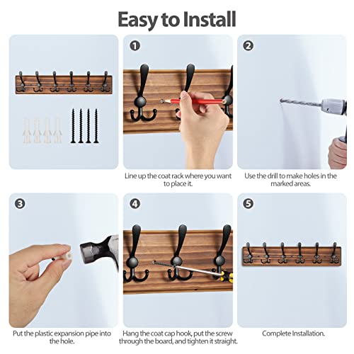 - [Convenient installation] Firstly, make dot marks on the wall and drill holes at the marked positions with an electric drill. Secondly, put the plastic expansion pipe into the hole. Finally, hang the coat cap hook, put the screw through the board, and tighten it straight and evenly to complete the installation.