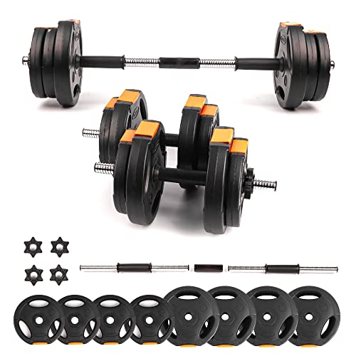 - VERSATILE ALL-IN-ONE SET: Our weight adjustable all-in-one dumbbell/barbell allows you to have a versatile full body workout to improve cardiovascular fitness, burn calories, build muscle and increase endurance. Perform an array of exercises such as squats, deadlifts, lunges, curls and rows, to strengthen and build your chest, bicep, triceps, shoulder, back, leg and abdominal muscles.