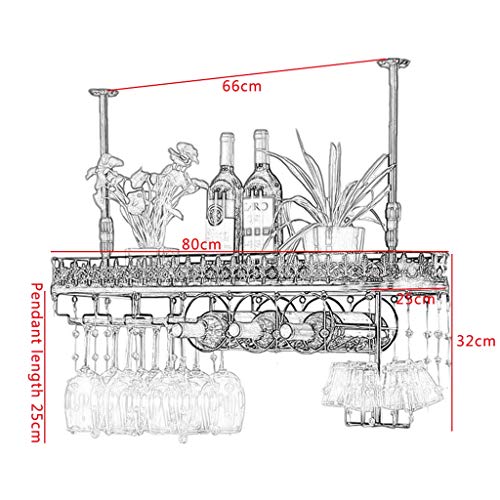 Home Dining Room Furniture PIBM Ceiling Wine Rack, Hanging Wine Glass Holder, Vintage Wine Bottle Holder, Rustic Wall Mounted Wine Holder, Adjustable Height Stemware Rack,