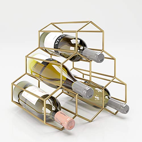 - Metal wine locker: the decorative metal wine rack offers space for 6 bottles, geometric shape combined with metal, perfect for any kitchen, lounge, living room and dining room