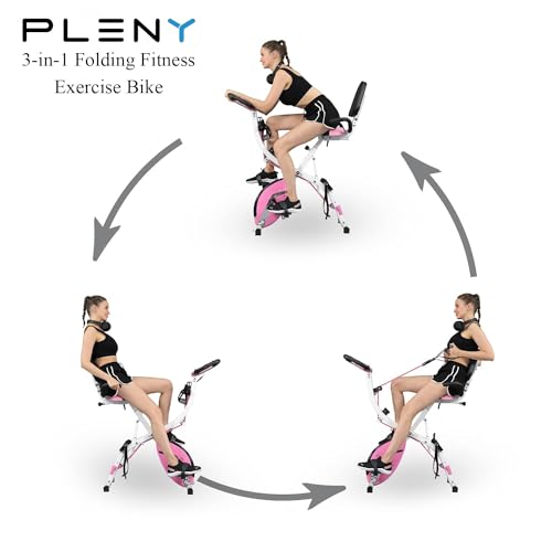 - ❤️【Great Value Gift for Seniors, Parents】: Compared with stationary bikes, the PLENY folding exercise bike is the more suitable gift for parents. This exercise bike has more adjustments, less noise, less space, easier to move, simpler installation methods, more portable folding storage functions, and a more stable support structure.