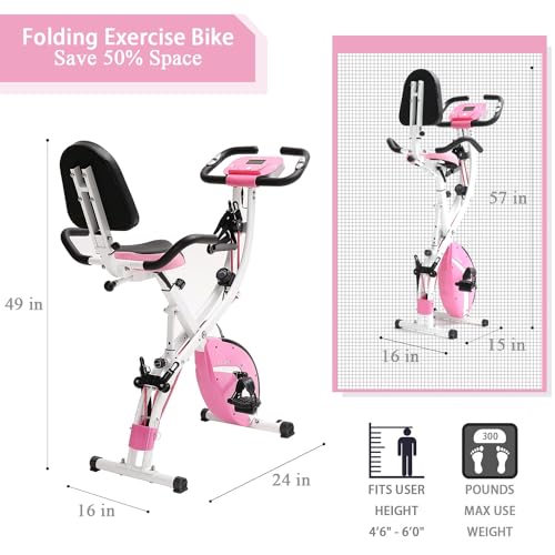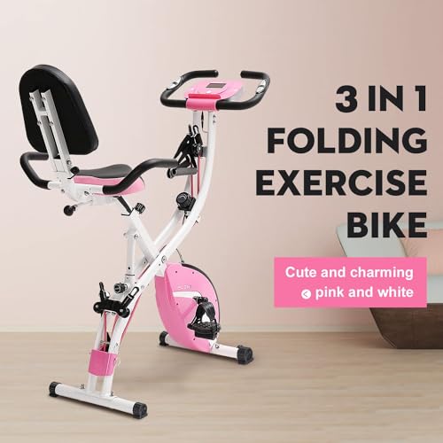 - ❤️【3 in 1 full body workout】: You can exercise in an upright, semi-reclining, or inclined position according to your habit and training purpose. Two adjustable arm resistance bands help to exercise arm muscles and upper body while riding. In addition, the leg resistance bands help to better improve leg and hip strength. In any case, I believe this pink exercise bike will become the best home folding exercise bike for you.