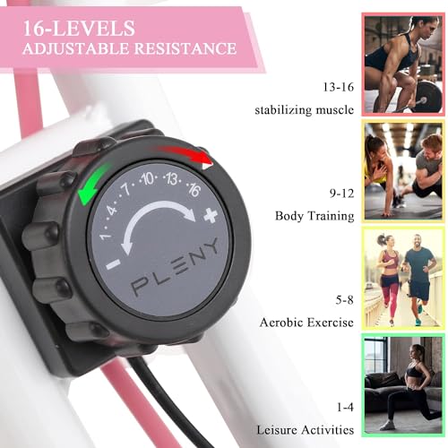 - ❤️【16 Resistance Levels】You can adjust the resistance from Level 1 to Level 16. Different intensity levels allow you to challenge yourself and change up your routine workout with a simple adjustment of the tension knob. This exercise bike can hold up to 300 lbs.