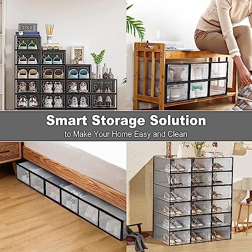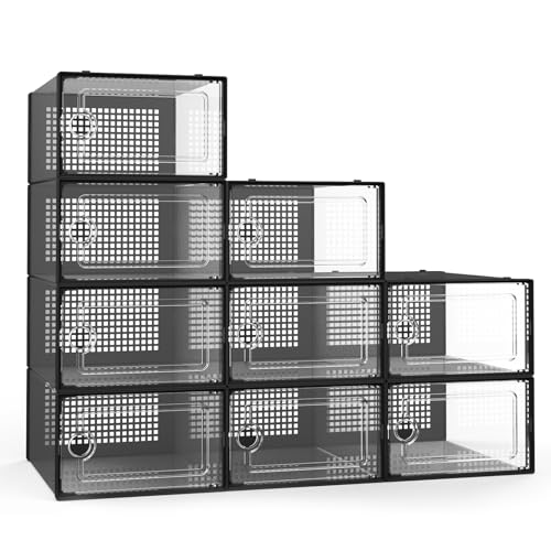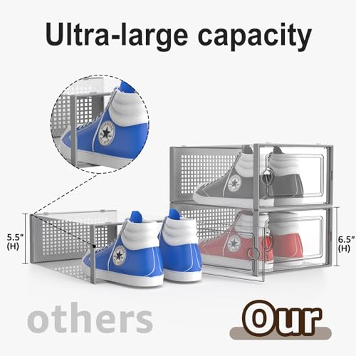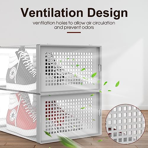- 【Easy Access Your Shoes & Ventilation design】clear plastic shoe boxes make it easier for you to find your shoes.The back of the shoe box is designed with ventilation holes to allow air circulation and prevent odors, breathable shoe containers stay fresh.