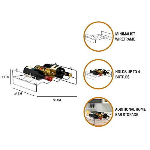 Premier 4 Bottle Wine Rack, Chrome, Wire, Silver, 34 x 36 x 11 cm