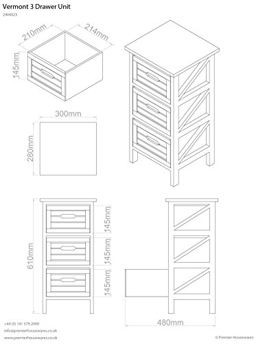 Home Bedroom Furniture Premier Housewares 2404023 Vermont 3-Drawer Chest – Grey