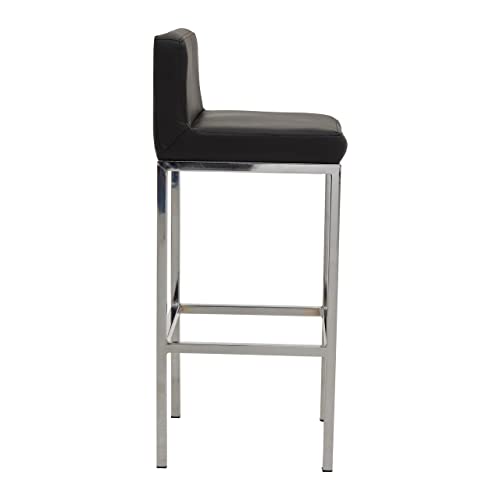 - Contemporary design, this bar chair has a black leather upholstery with chrome finish supporting legs, making it look modern.