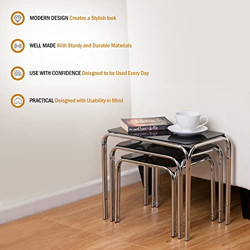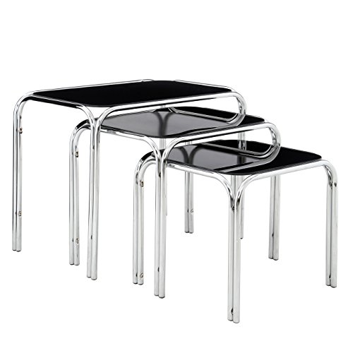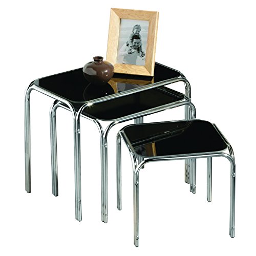 - Multipurpose, the black glass of the nest of table is usable for different items such as plates, plants, photos or lamps