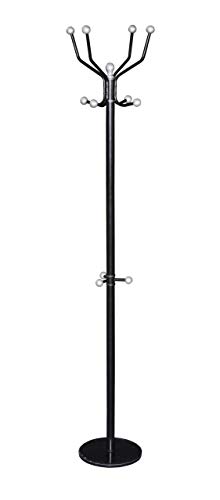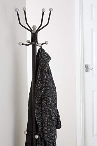 Premier Housewares Standing Coat Hangers Coat Hooks Metal Coat Stands - Black Coat Hanger Chrome Finish Coat Rack Stand 194 cm x 30 cm x 30 cm