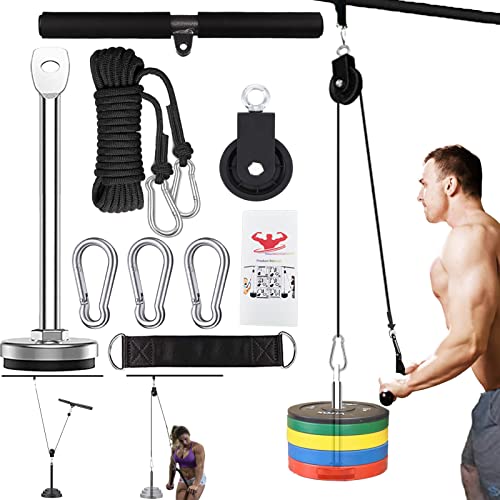- 😉EASY ASSEMBLE - you can easily remove the lifting buckle and replace the device handle, just pass the loading pin through the center hole of the weight plate, and then connect the parts. The lifting pulley system can be connected to the power frame, upper tie rods, beams and wherever belts can be installed. Its small package size allows you to take it with you and become your own personal equipment.