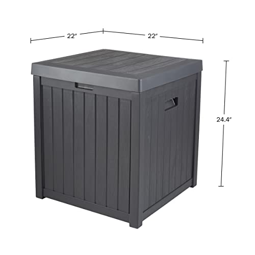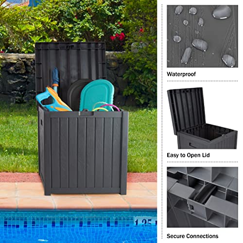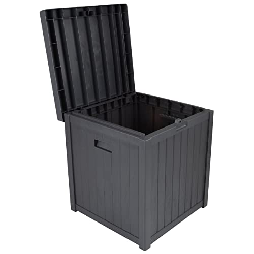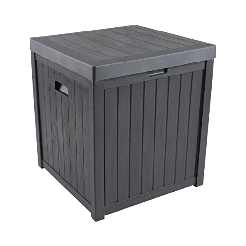 • DURABLE DECK BOX: Constructed with durable resin material, this Pure Garden Storage Box is waterproof and designed to withstand harsh outdoor conditions to keep your outdoor essentials dry and protected from the elements. Instead of leaving items scattered around your backyard, you can keep them all organized in one place. This outdoor storage box can help keep your outdoor space organized, neat, and tidy.