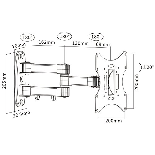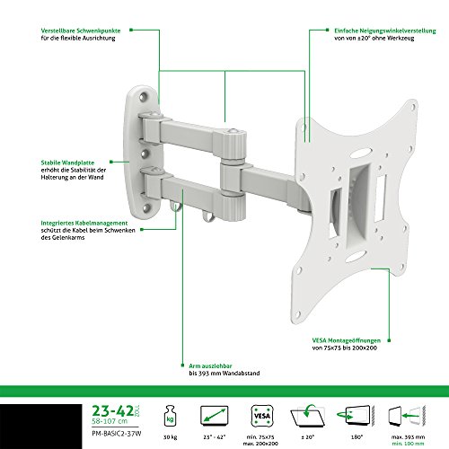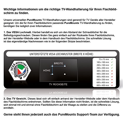Home Home Entertainment Furniture PureMounts Extendable Tilt/Swivel Low Profile Wall Mount for TV’s/Monitors with 37 “,VESA 75×75, 100×100, 200×100, 200×200, inclinable: +/- 20 °,