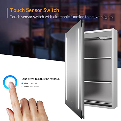 - LED Dimmable Switch: Touch the sensor on the front of the mirror glass to activate the light. Press and hold the sensor for 2-3 seconds to change the light intensity according to your daily needs.