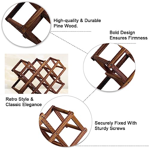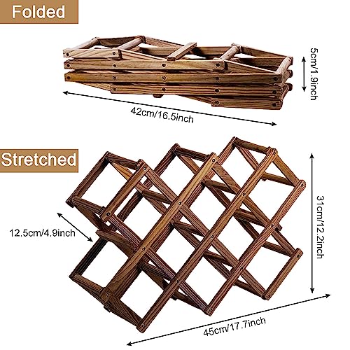 • 🍾【Fits Bottles Up To 2.75" Wide】: The wooden bottle holder adopts the traditional wooden tenon structure, When fully expanded, about 45*31cm, the side length of each small square is 12cm, with 10 slots, can hold up to 10 bottles of wine. Folded, convenient and space-saving, about 42*5 cm.