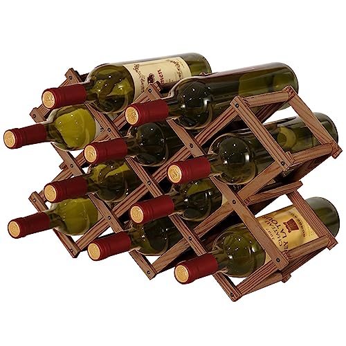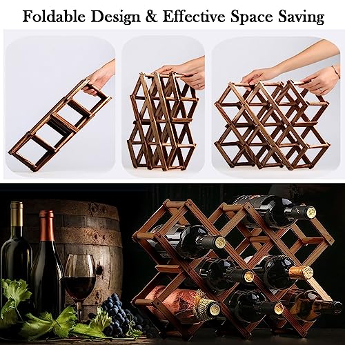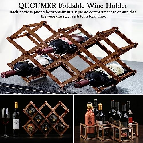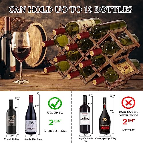 QUCUMER Wooden Wine Rack, Foldable Wine Storage Organizer 10 Slot Foldable Wine Rack Table Free Standing Bottle Racks Foldable Wine Shelves for H
