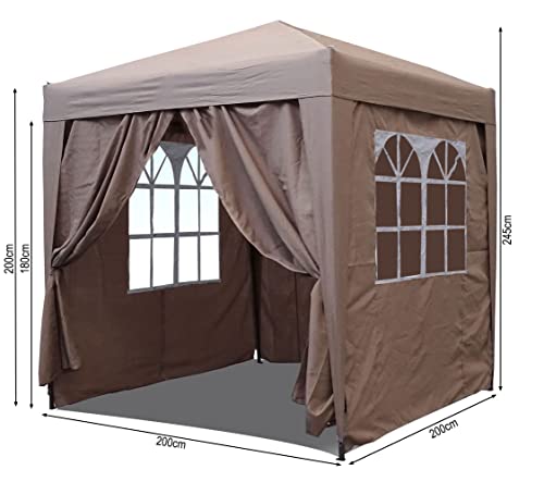 QUICK STAR Garden Pop up Gazebo 2x2m beige with 4 side walls and carrying bag