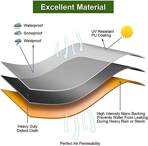 - Hochwertige Materialien: Neue, verbesserte Materialien, Möbelbezüge aus hochdichtem Oxford-Nylongewebe 420D und wasserdichter PVC-Beschichtung. Der Stoff hat eine hohe Nähdichte, eine starke Reißfestigkeit und eine lange Lebensdauer. Möbelbezüge für den Außenbereich schützen Ihre Tische und Stühle besser vor Sonnenlicht, Regen, Wind und Staub.