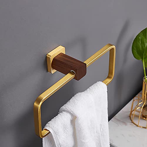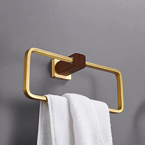 RAKUTE Towel Ring Towel Rail Heavy Duty Space Aluminum and Walnut Bathroom Towel Rack Wall Mounted Towel Holder Storage Rack for Bathroom, Kitche