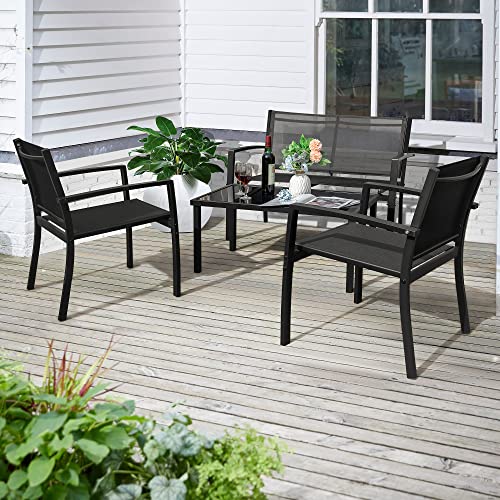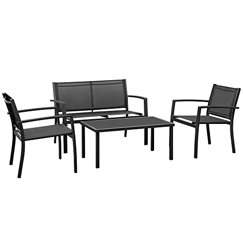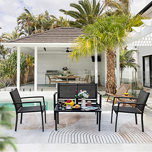 Rankok 4 Pieces Patio Furniture Set Modern Patio Conversation Sets Textilene Outdoor Furniture Patio Chairs Set of 4 with Loveseat Coffee Table f