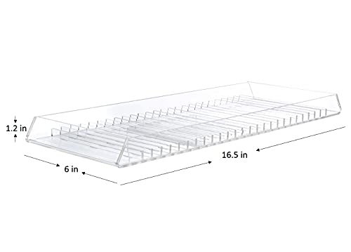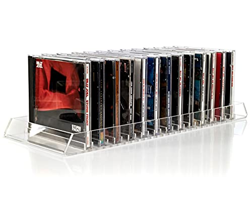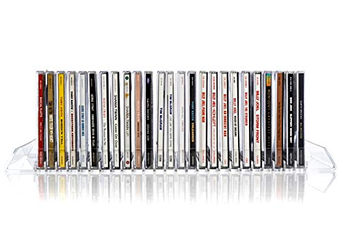 - NO ASSEMBLY NECESSARY, HOLDS 25 CD’s, Easy to set up on your table top or CD player deck, Minimalist design remarkably Practical and Functional. Measures 16.5” x 6” x 1.2” Convenient and Durable Acrylic