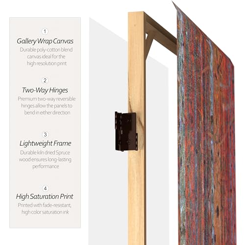 - Wood and Canvas Construction: Our folding screen features a durable poly-cotton blend canvas ideal for the high resolution print. The durable kiln dried Spruce wood ensures long-lasting performance while being light enough to move and store easily.