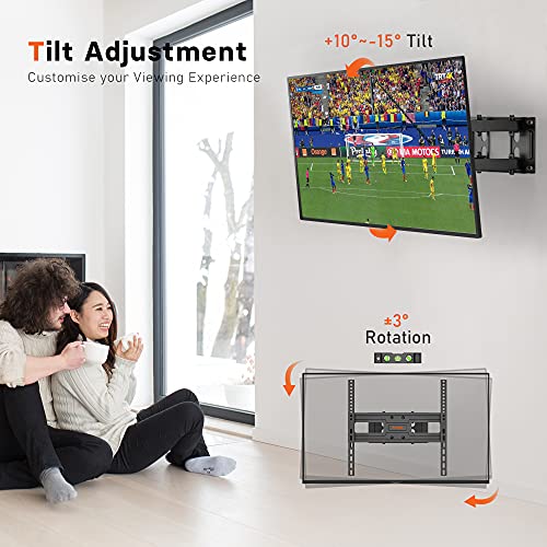 - Maximum Flexibility: Our TV wall mount swivels 60° left and right to provide your most comfortable & ergonomic viewing angles (max swivel angles depends on TV size); tilt 10° up and 15° down to eliminate glare & reduce neck or eye strain. It can also be rotated ±3° to adjust level.