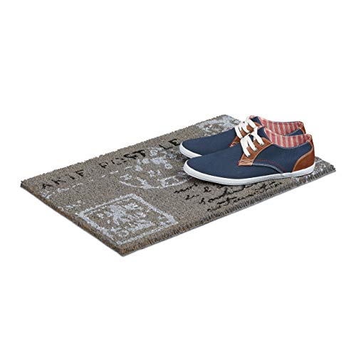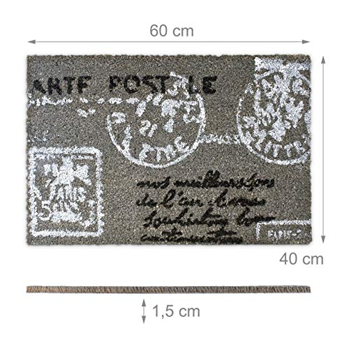 Home Hallway Furniture Relaxdays Coconut Fibre POSTCARD Doormat 40 x 60 cm Coir Welcome Mat with No-Slip Rubber PVC Underside, Grey