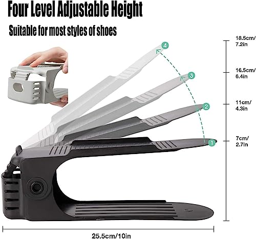 - 4 ADJUSTABLE LEVELS - The height and angle of the shoe rack organizer can be easily adjusted between 4 different levels, You can adjust from 2.7'', 4.3'',6.4'' to 7.2'' according to the type of shoes