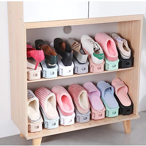- KEEP YOUR SHOES TIDY - Keep each shoe pair stored and individually separated to avoid the mess at your home. Avoid your shoe clutter by organizing them properly with this shoe organizers and storage for closet..HUMANIZED DESIGN - This shoe stacker is designed for efficiency and comfort in all areas of use. This user-friendly design creates a breathable, easy to clean and non-slip platform which allows you to have a firm positioned placement for your shoes..