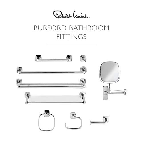 - BRITISH DESIGN - Robert Welch Burford bathroom fittings are characterised by soft square shapes and forms. The Burford Glass Shelf is 555mm wide and 155mm deep. Matching Burford bathroom accessories available