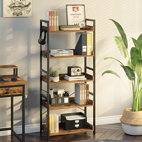 - 【Vintage Industrial Bookshelf】 Constructed with rustic wooden shelves and black metal frames , this bookcase can bring a linear industrial charm and retro warm element to your room. With a neutral color scheme and simple design, the storage shelf can mesh with any home decor. A great display and storage choice for your bedroom, living room, kitchen or office.