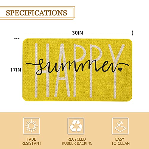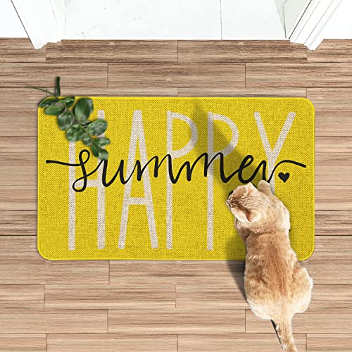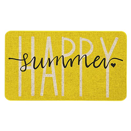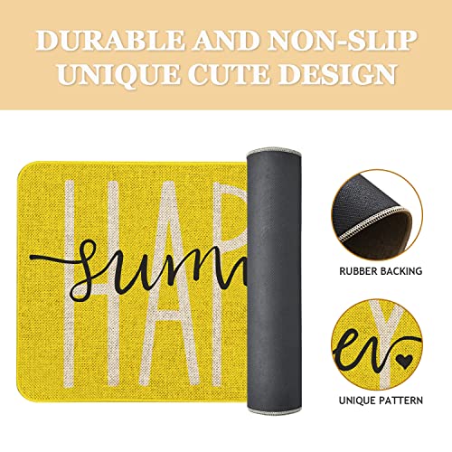 - 【Quality Material】: This summer welcome mat is made of high quality linen. The linen surface scrapping most of dirt, mud and debris keeping floor clean and tidy. High quality non-slip rubber backing prevents mat from bunching and shifting.