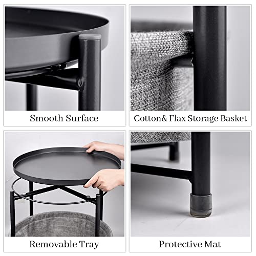 - Flexible Design: The round side table is detachable. Both the cotton& flax storage basket and the tray top are removable, adding more uses and making your life more convenient. The round tray can be removed and used as a dinner plate, and the cloth storage bag can be used as a laundry basket or toy's storage bag. Multi-purpose will make your home more tidy. Also, your pets may love this storage bag, which turns into their bed.
