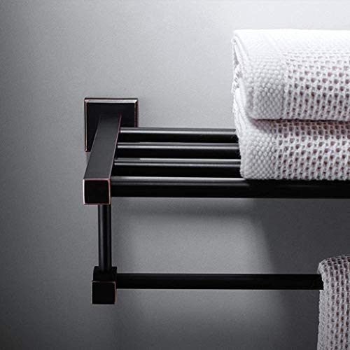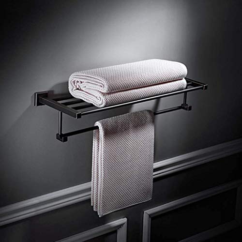 Home Bathroom Furniture RSOCHS Bathroom Bath Towel Rack with Double Towel Bar Wall Mount Shelf Rustproof Stainless Steel Brushed Finish black