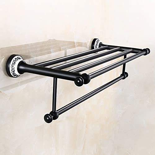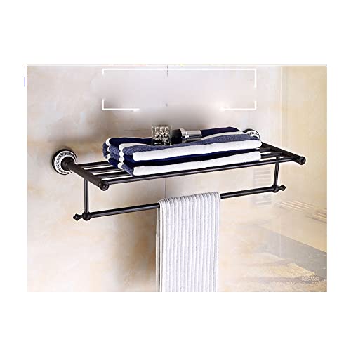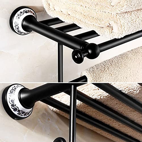 Home Bathroom Furniture RSOCHS Wall Shelf Black Bathroom European Copper Double Towel Rack Bathroom Widened Thick Wall Hanging Towel Storage Rack
