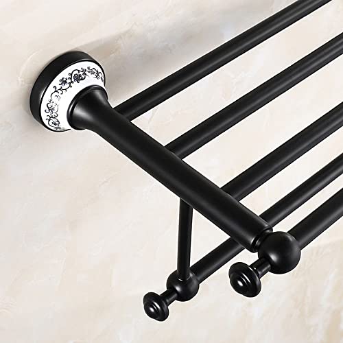RSOCHS Wall Shelf Black Bathroom European Copper Double Towel Rack Bathroom Widened Thick Wall Hanging Towel Storage Rack