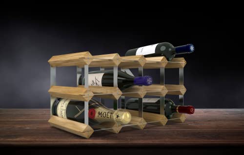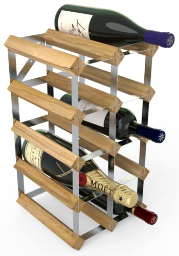 RTA Traditional Wine Rack - Fully Assembled, Handsome FSC Natural Pine, British Galvanized Steel, Made in UK, Light Oak Colour (12 bottle)