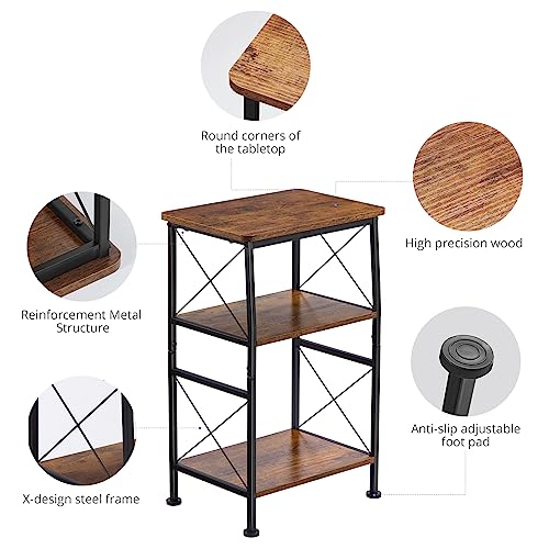 Product Description RUBOKA end tables living room Refreshes Your Home Ruboka has been committed to providing customers with high quality products and professional after-sales team.Ruboka selects the best quality materials and aims to bring happy and Comfortable home life to you.This side tables bedroom embodies vintage design, functionality and durability, must be a perfect choice. Material: MDF + Metal Frame Dimension: D10.63''xW15''xH24'' Weight Limit: 150lb Storage area: 3-layers High precision wood Reinforced support structure Anti-slip adjustable foot pad Round corners of the tabletop Why Need Ruboka Multi-functional Side Table? Pre-reserved hole, uniform parts, and detailed instructions allow you to assemble this nightstands quickly.The night stands for bedrooms made of premium durable wood board and sturdy black steel, which ensure its stability and security.Unique 3-tier step design furnishes roomy space for storage and display, perfect choice of your home and office. The coffee table can keep snacks, coffee, remotes and other things at hand next to your sofa, let you fully enjoy your leisure moments. This bedside table can be used beside your bed for your phone, alarm clock and eye masks. This small table storage shelf can be placed in the study room for files, books and office supplies or in the kitchen for vegs, fruits, cans and more. Premium MDF Material Made of premium MDF which are sturdy and durable enough to strongly support 100lb weight on the top layer. Exquisite workmanship long-term use. Stable & Adjustable Pads Adjustable feet protect the floor from scratches, Even on uneven floors, you can adjust the height slightly to keep the table stable. X-Design Metal Frame Anti-rust black finish and sturdy X-design steel structure ensure its stability and security which prevent items from falling. Round Corners and Smooth Edges This small side table adopts the round corner design and the smooth edges which protect you from injury. Side Tables for Living Room This living room tables can be put in your living room, which helps to add the living room a decor with features, expand storage space and vintage style. Couch Table It is perfect to place beside the sofa, a place to put your snacks and coffee within your easy reach when you are sitting on your sofa enjoying movies. Night stands for bedrooms Perfect to be used as a nightstand at your bedside to keep your cell phone, clock, lamp, and other items within arm’s reach.