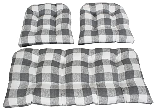 RULU Outdoor/Indoor Set of 3 Cushions-1 Settee (44"x19"x5") & 2 Pieces of Wicker Seats (19"x19"x4") Patterson Stone, Gray