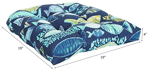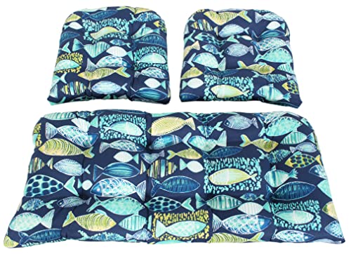 RULU Set of 3 1 Settee (44"x19"x5") & 2 Pieces of Wicker Seats (19"x19"x4") Hooked Lagoon Outdoor/Indoor Cushions Set, Navy