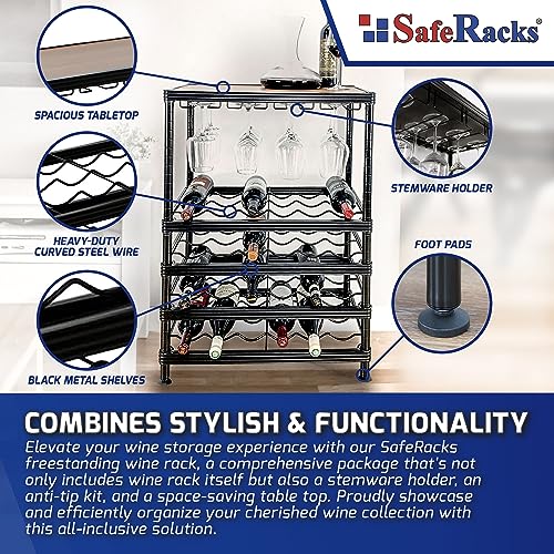 - COMPLETE PACKAGE: This wine rack includes everything you need for convenient storage. With a 24-bottle capacity, stemware holder, anti-tip kit for safety, and a space-saving design, proudly display and organize your wine collection in style.