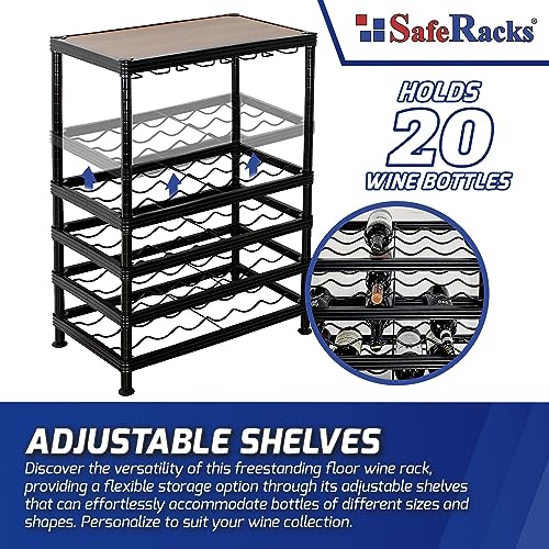 - VERSATILE WINE STORAGE SOLUTION: This freestanding floor wine rack offers flexible storage options with adjustable shelves to accommodate various bottle sizes and shapes. Adapt it to your collection and easily organize your wines.